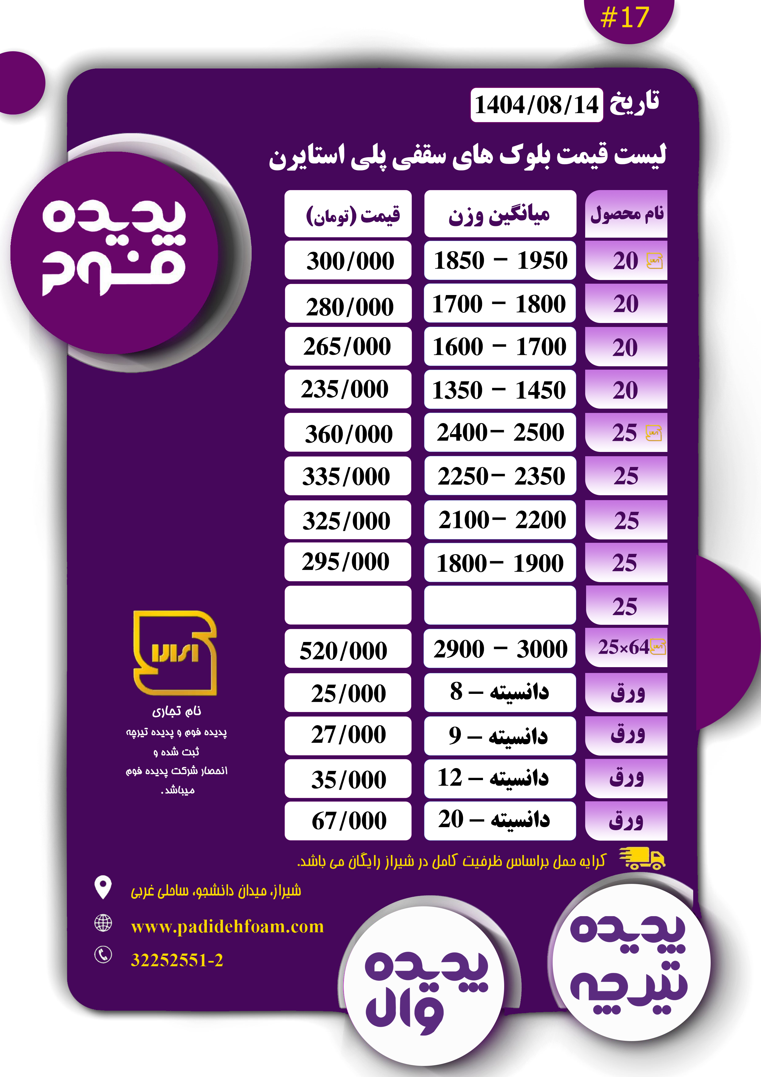 شرکت پدیده فوم با هدف بلندمدت افزایش سطح کیفیت در زمینه مصالح ساختمانی و هدف اولیه تولید بلوک های سقفی پلی استایرن در راستای ارتقاء صنعت استان فارس در سال 81 در شیراز به ثبت رسید. فاز اول تولیدات شرکت به عنوان اولین دریافت کننده پروانه بهره برداری تولید بلوک پلی استایرن در استان فارس، شامل انواع بلوکهای سقفی و ورق های پلی استایرن غیر قابل اشتعال بوده و د رسال 1383 وارد بازار گردید. خوشبختانه با برنامه ریزی های انجام شده فاز دوم کارخانه در پایان سال 1385 با ظرفیت تولید 1700 تن بلوک پلی استایرن که حدود یک میلیون متر مربع بلوک سقفی استاندارد می باشد راه اندازی و افتتاح گردید که علاوه بر استان فارس به استان های خوزستان ، بوشهر ، کهکیلویه و بویراحمد و هرمزگان ارسال می گردد.فاز سوم تولیدات که شامل انواع بلوک های سبک دانه سرپر می باشد با هدف بهینه سازی ، سبک سازی و افزایش سرعت اجرا در دیوارهای آپارتمانی بعد از فعالیت بر روی سقف در آخر سال 1393 راه اندازی و به بازار عرضه گردید. فاز چهارم تولیدات شامل انواع تیرچه های بتنی استاندارد بوده که در سال 1400 در محل جدید شرکت با نام پدیده تیرچه که زیر مجموعه ای از گروه تولیدی پدیده فوم میباشد راه اندازی گردید